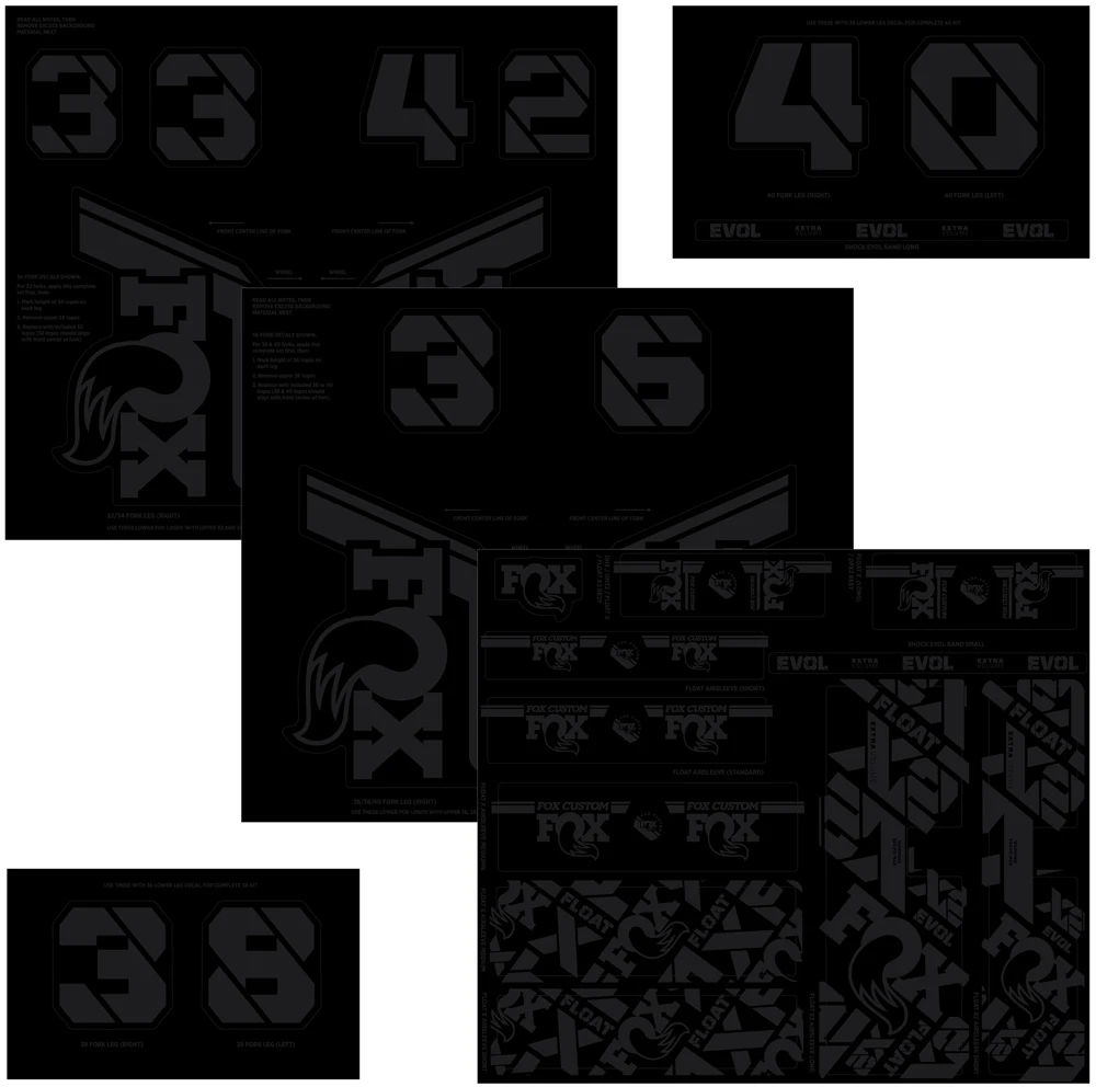 Das Aufkleberset enthält spezifische Decals für die aktuellen Federgabeln und Dämpfer von Fox Racing.