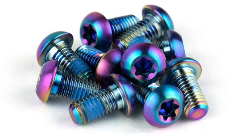 12 Bremsscheiben Befestigungsschrauben aus Titan für Sram/Avid Bremsscheiben in zwei verschiedenen Farben.